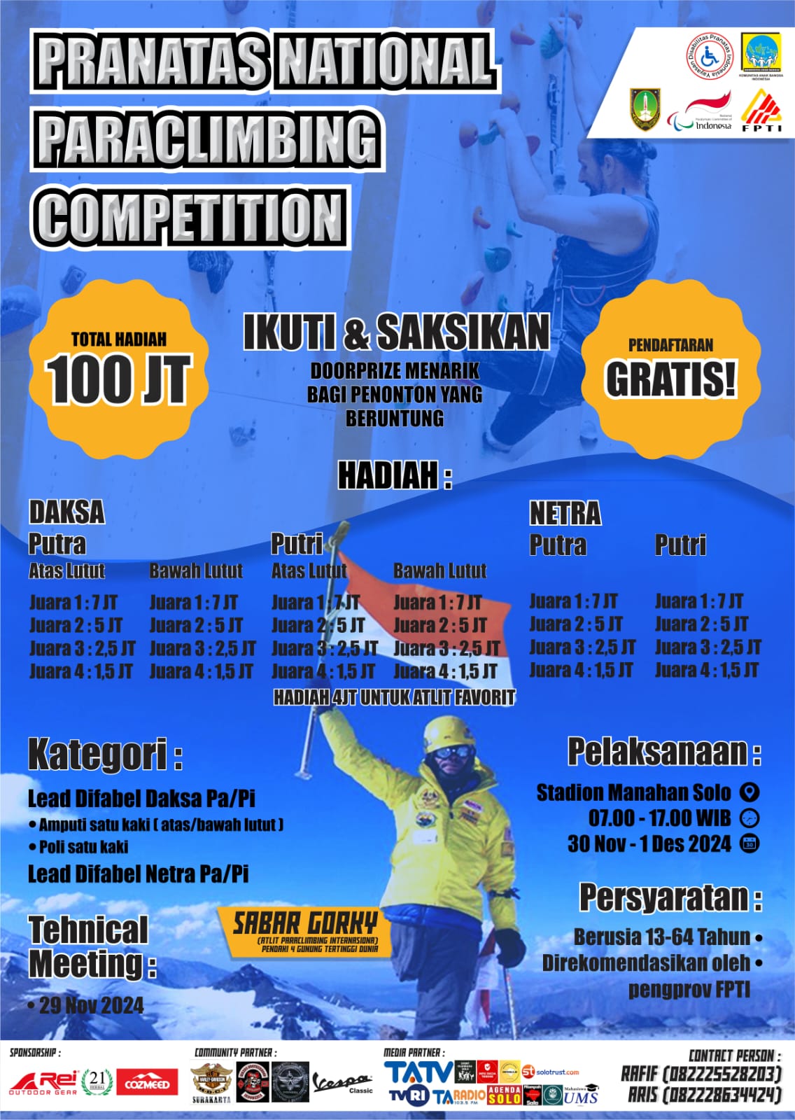 Sala – Janji paring hadiah kanthi nilai Rp100 yuta saking Dodi, pangarsa saha pamilik Yayasan Prantas, nalika PTANATAS Nasional Paraclimbing Competition, dumugi dinten punika dereng kanyataaken.